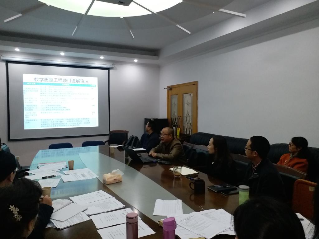 刘成华副院长代表博彩娱乐城 做了期中教学检查汇报,主要从课程专项评估、毕业论文(设计)持续改进、教研教改和本科教学工程项目进展、教学项目经费执行使用和常规教学等五个方面做了汇报。汇报后,方睿处长就专项检查时期拉长,为啥要重点对课程评估、教改和本科教学工程项目及几个项目经费打总合在一起的情况详查做了说明。