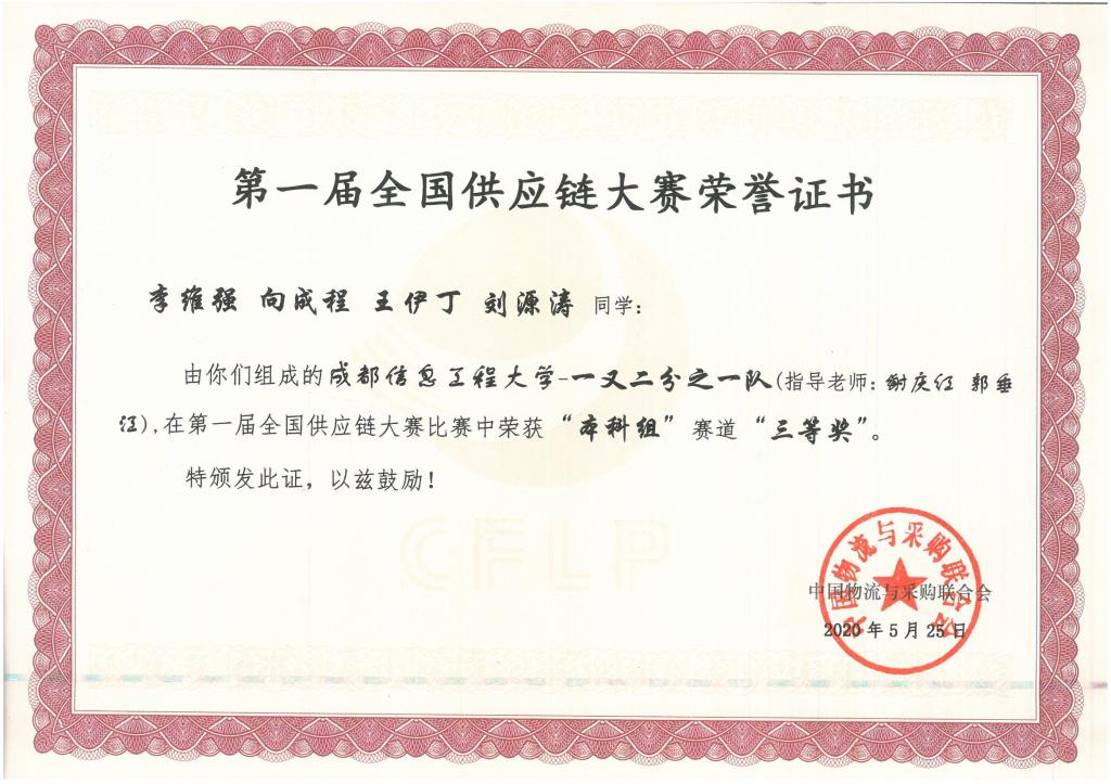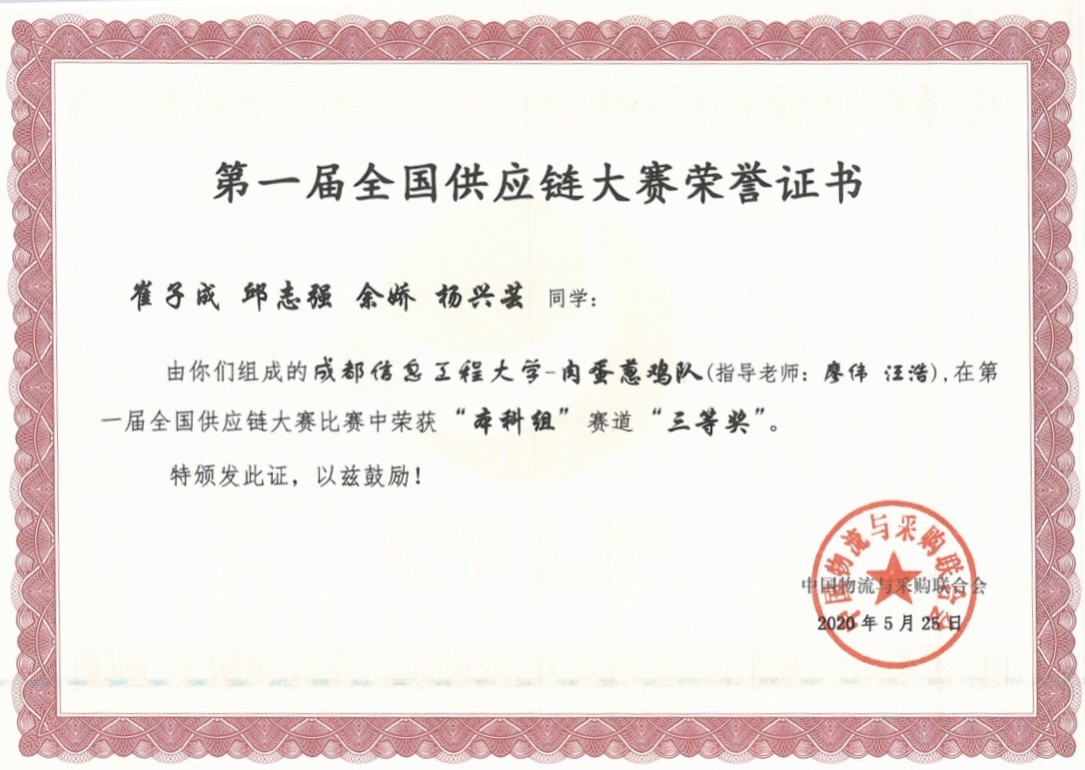 中国物流与采购联合会近日下发了《关于表彰第一届全国供应链大赛获奖单位的决定》的表彰文件,我校两支代表队在总决赛中均喜获国赛三等奖。