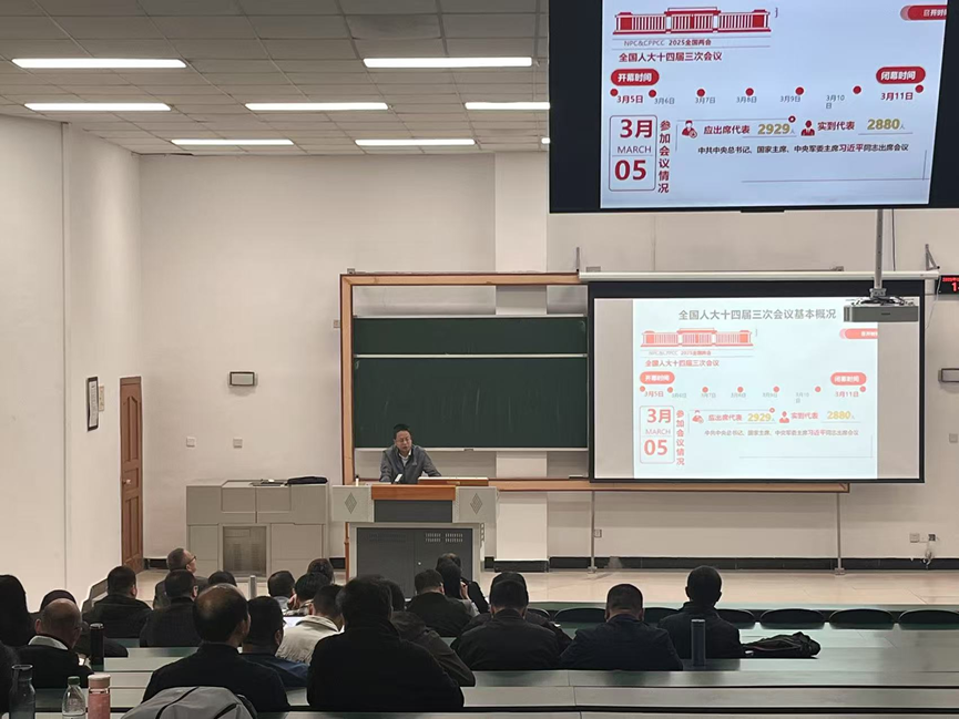 3月27日下午,博彩娱乐城 与统计博彩娱乐城 在龙泉校区3101教室联合开展教职工政治理论学习,邀请学校马克思主义博彩娱乐城 党委书记谢清明作2025年两会精神的专题宣讲。博彩娱乐城 、统计博彩娱乐城 全体教职工参加学习。博彩娱乐城 党委书记桑作银主持学习。