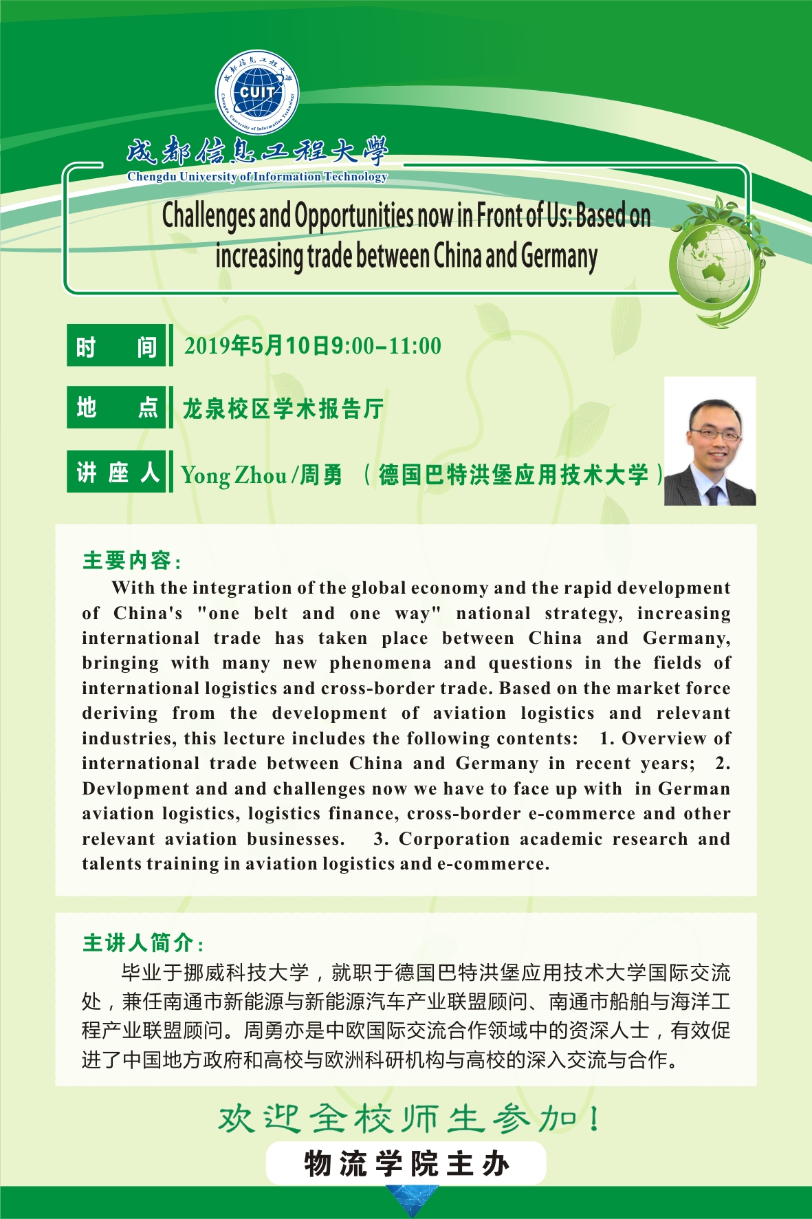 【学术预告】Challenges and Opportunities now in Front of Us: Based on increasing trade between China and Germany
